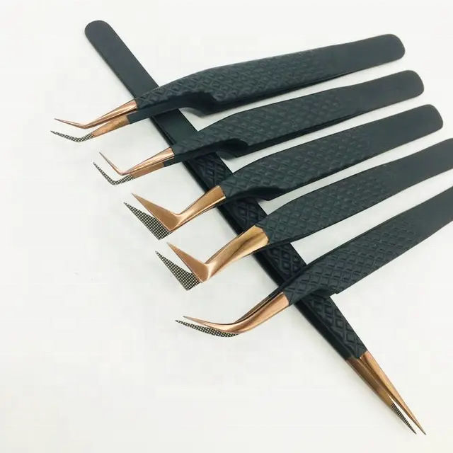 Pince à cils à poignée diamantée en acier inoxydable de haute qualité avec logo personnalisé Outil d'extension de cils à pointe lisse et légère