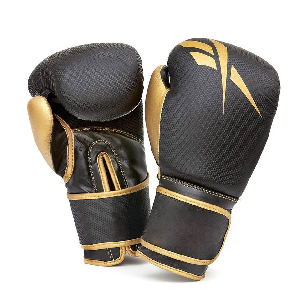 Gants de boxe d'entraînement personnalisés de haute qualité avec logo, en cuir doré professionnel, à doigts entiers, avec fermeture en tissu coton et polyester