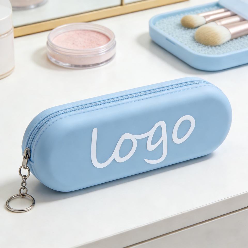 Sac de rangement pour pinceaux de maquillage en silicone de haute qualité, personnalisé avec logo, résistant à l'eau, portable, grand format, élégant, avec fermeture éclair, pour l'extérieur
