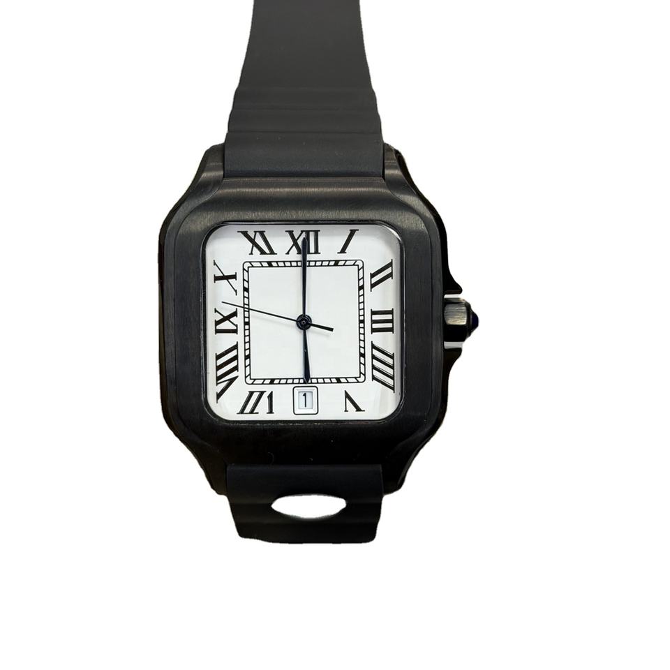 Montre mécanique pour homme de haute qualité avec logo personnalisé, cadran blanc, aiguilles romaines, bracelet en silicone