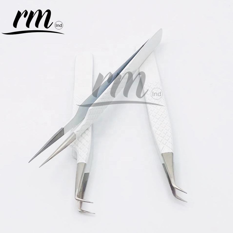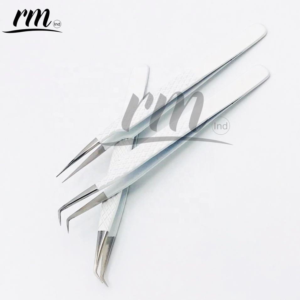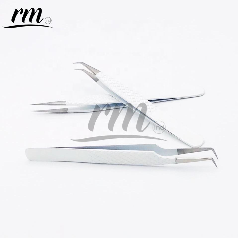 Pinces à cils blanches personnalisées de haute qualité avec logo, en acier inoxydable professionnel à pointe fine, vente en gros à prix raisonnable