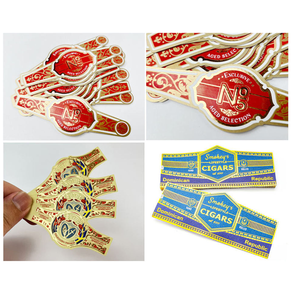 Étiquettes de cigares personnalisées de luxe de haute qualité, embossage, étiquettes de bague de cigare, autocollant avec logo