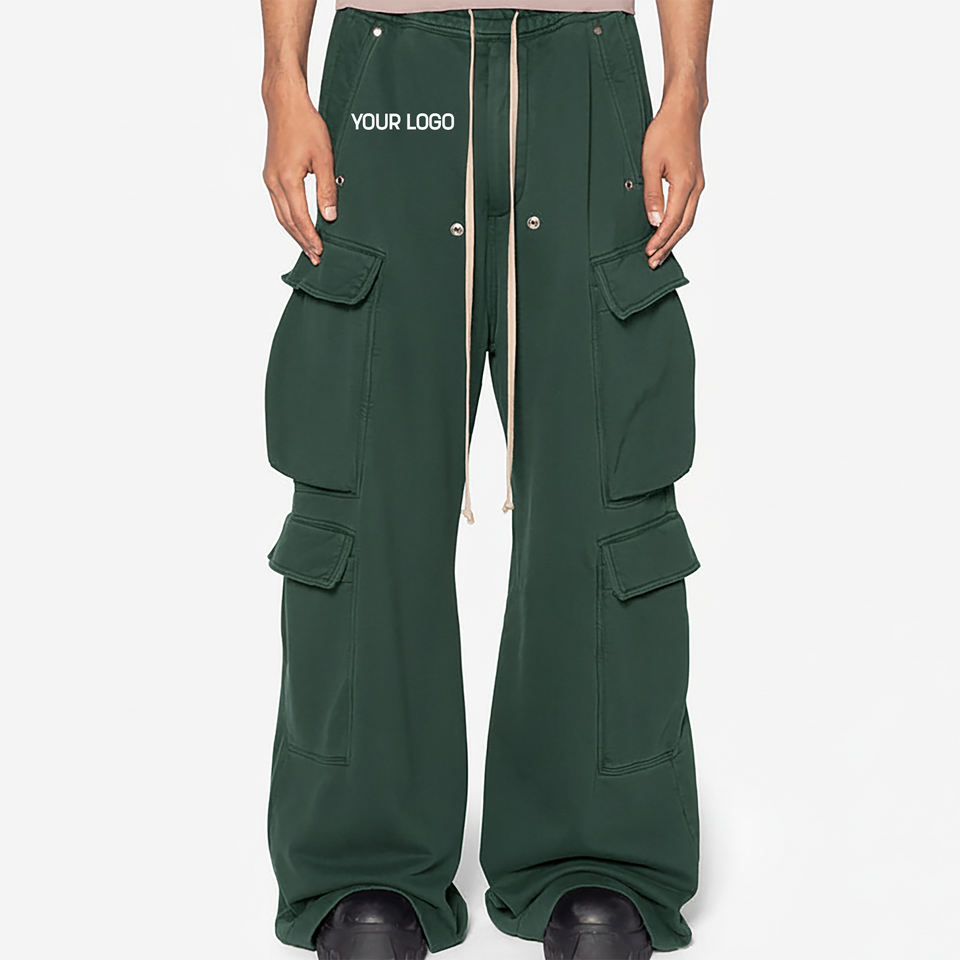 Pantalon de survêtement ample surdimensionné en sergé 100% coton de haute qualité, fabriqué sur mesure, avec cordon de serrage long, plusieurs poches cargo, pantalon pour homme