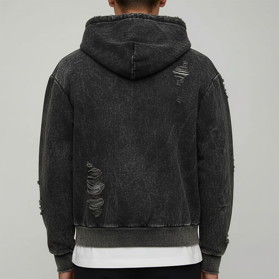 Sweat-shirts à capuche en molleton d'hiver 100 % coton, sur mesure, de haute qualité, effet délavé, coupe oversize, avec logo brodé personnalisé et déchiré