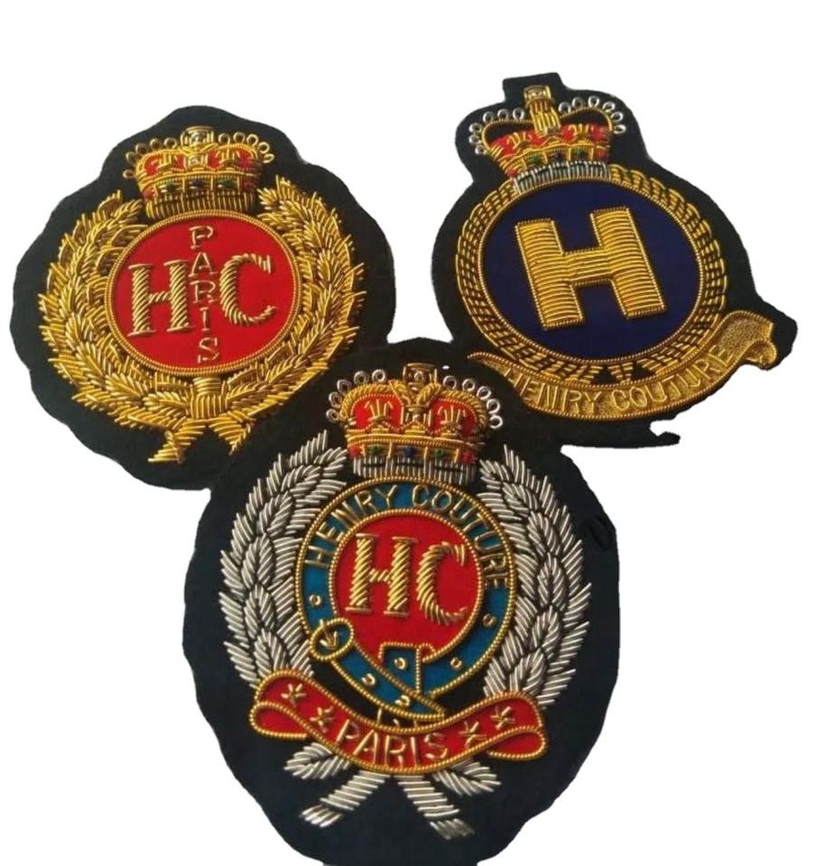 Écussons de blazer de luxe sur mesure de haute qualité, épingle de sûreté, nouveau design, aspect premium, fil de bouillon 3D en relief, résistant à l'eau