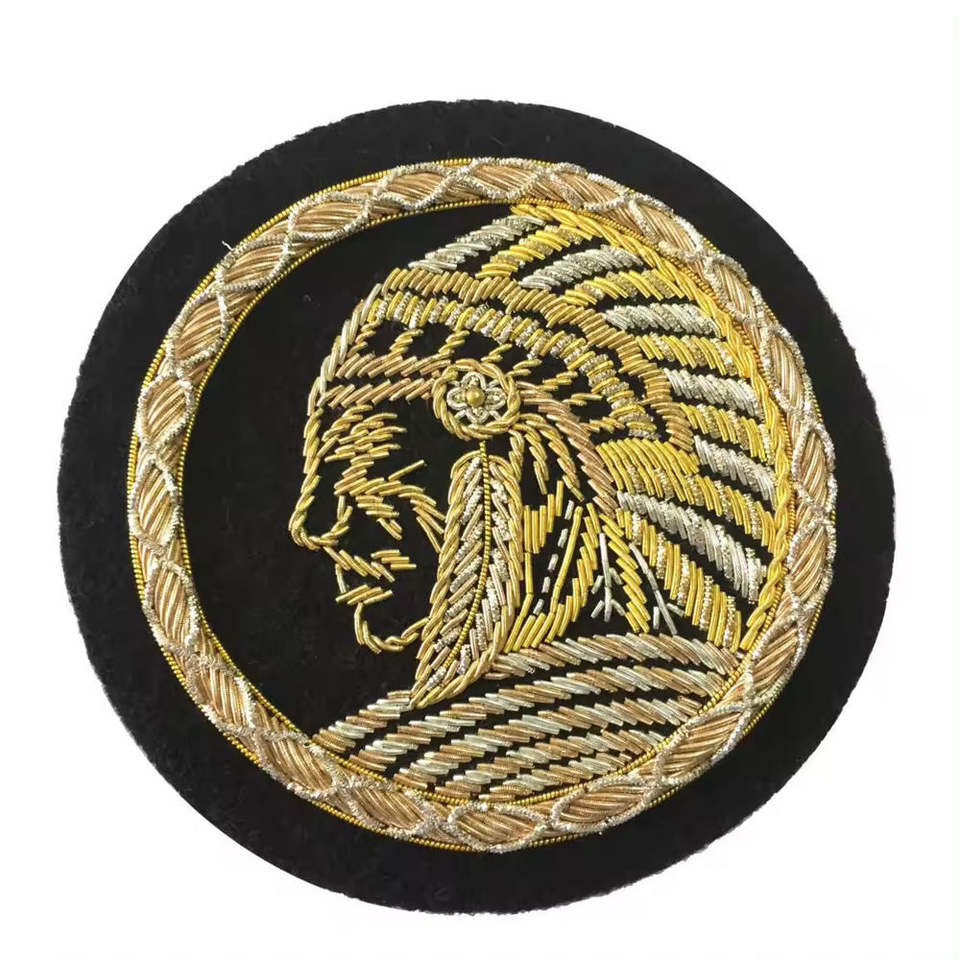 Écussons brodés 3D de haute qualité, sur mesure, nouveau style, fils de bullion, à coudre, à repasser, logo en métal, laiton, perles, couleur personnalisée