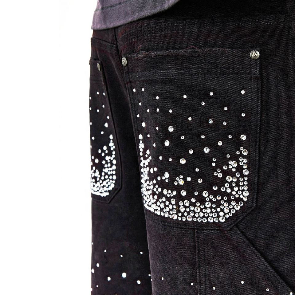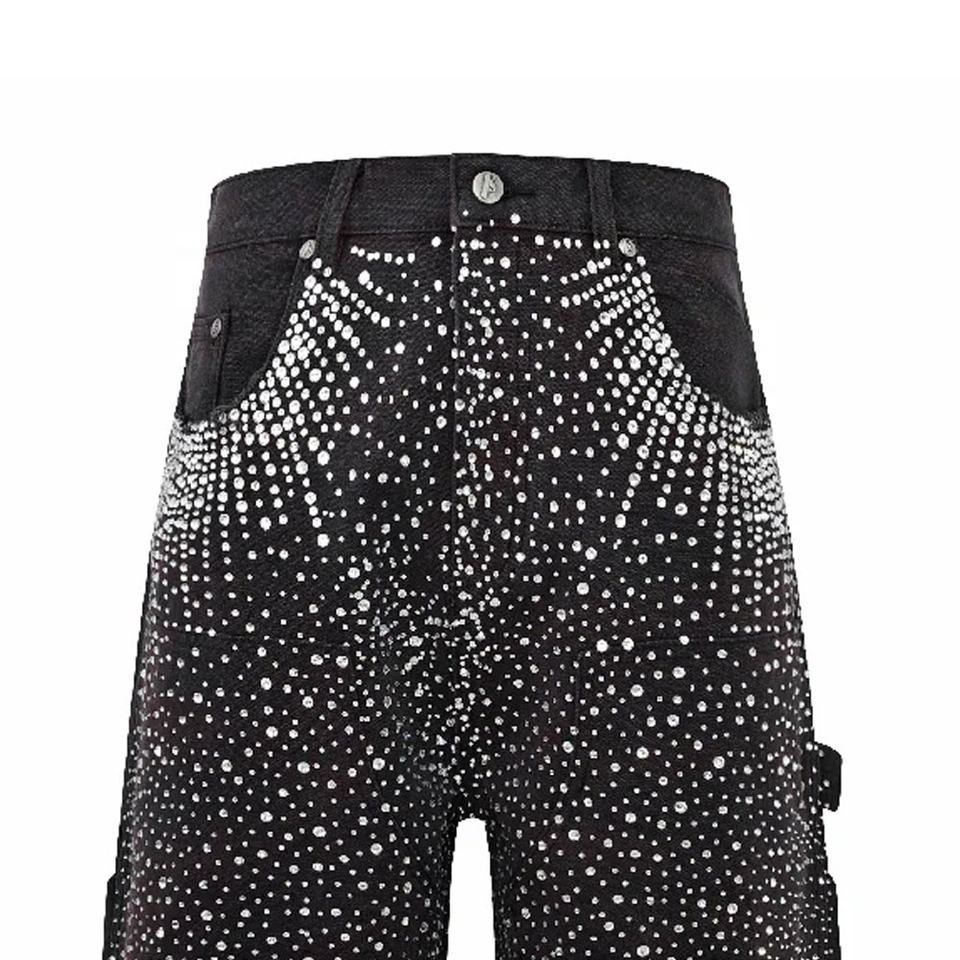 Shorts en jean noir pour homme, personnalisés, de haute qualité, entièrement ornés de strass, style streetwear avec ourlet déchiré, fabrication OEM au Pakistan
