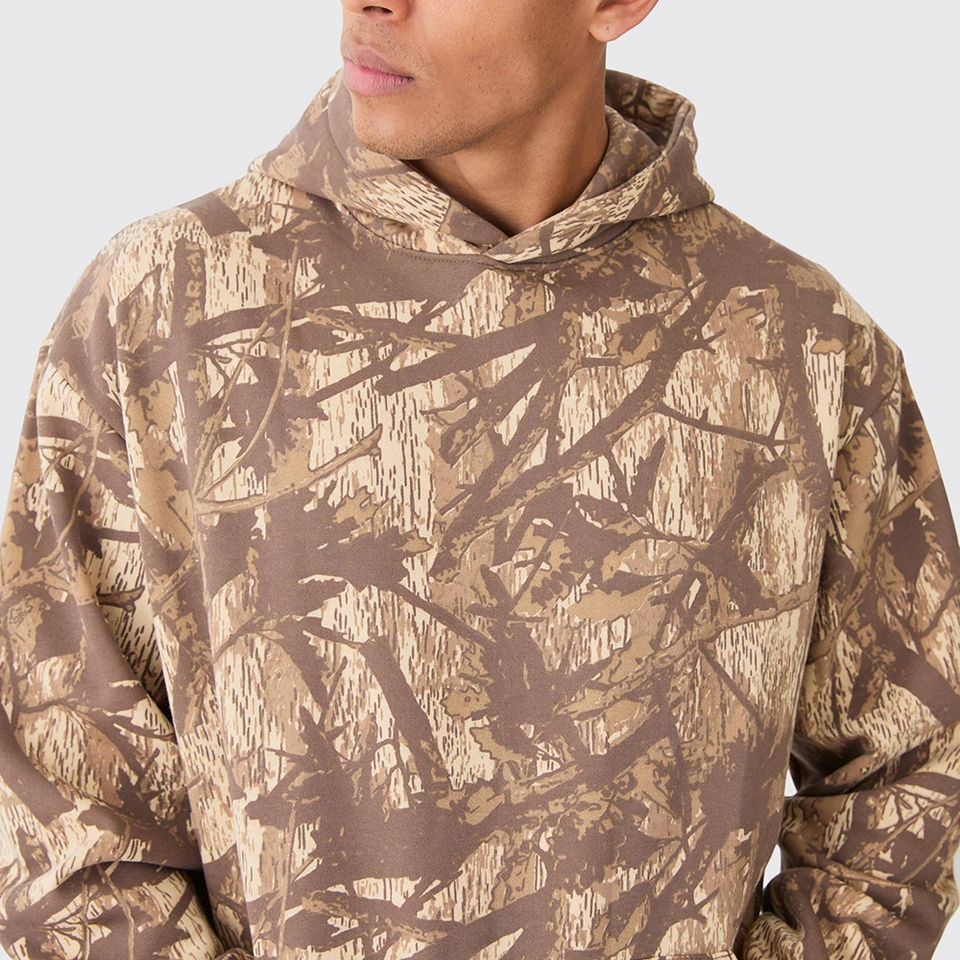 Pull de camouflage surdimensionné en coton personnalisé de haute qualité pour hommes sweats à capuche et sweat-shirts imprimés par sublimation avec sérigraphie