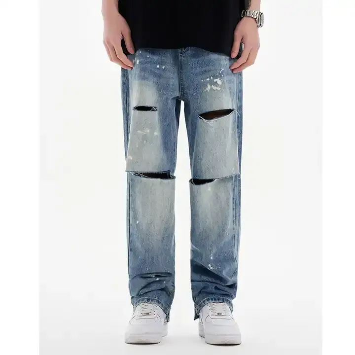 Jean en denim personnalisé de haute qualité pour hommes, pantalon cargo baggy à jambe large en détresse, technique de lavage, vêtements de rue solides pour l'hiver