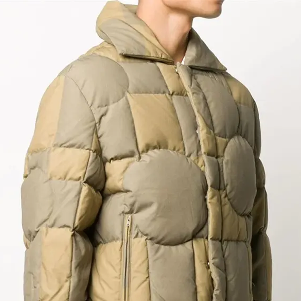 Veste de créateur personnalisée de haute qualité pour hommes tendance toile matelassée col montant deux poches avant passepoilées rembourrage de plumes bouffantes