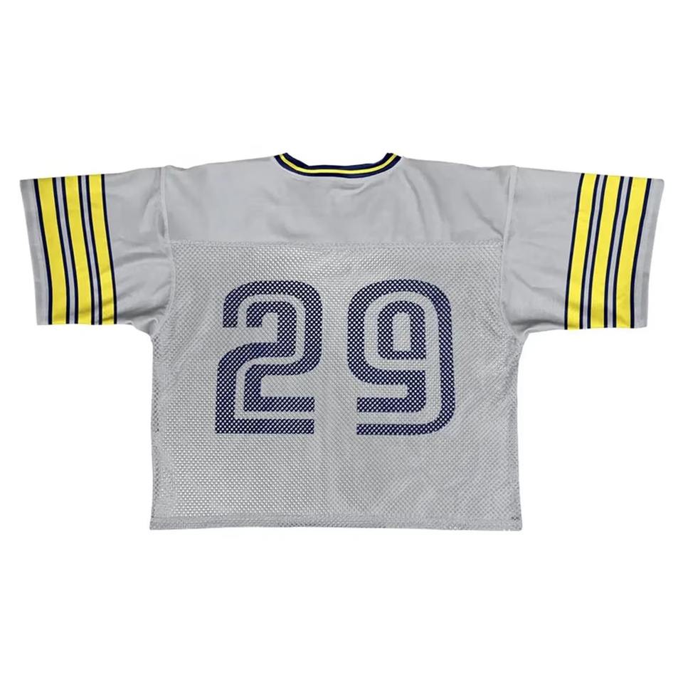 Maillot de football américain respirant en maille à col en V pour homme, coupe régulière, haute qualité, manches courtes, ample, grandes tailles