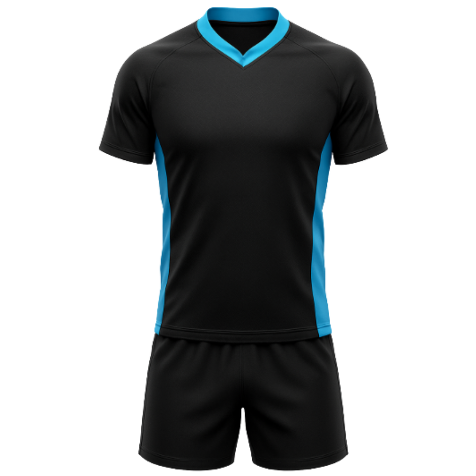 Uniforme de rugby pour hommes personnalisé de haute qualité - Ensemble de maillot d'équipe sublimé noir et cyan