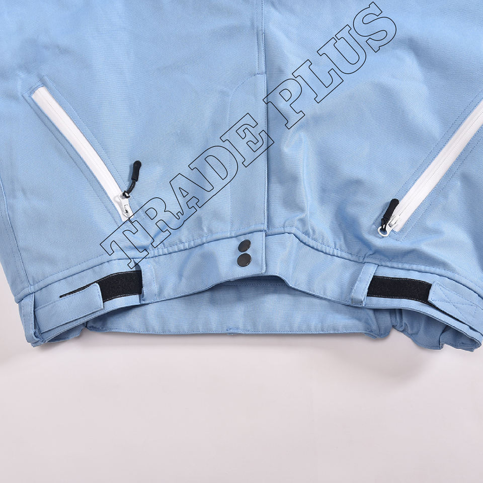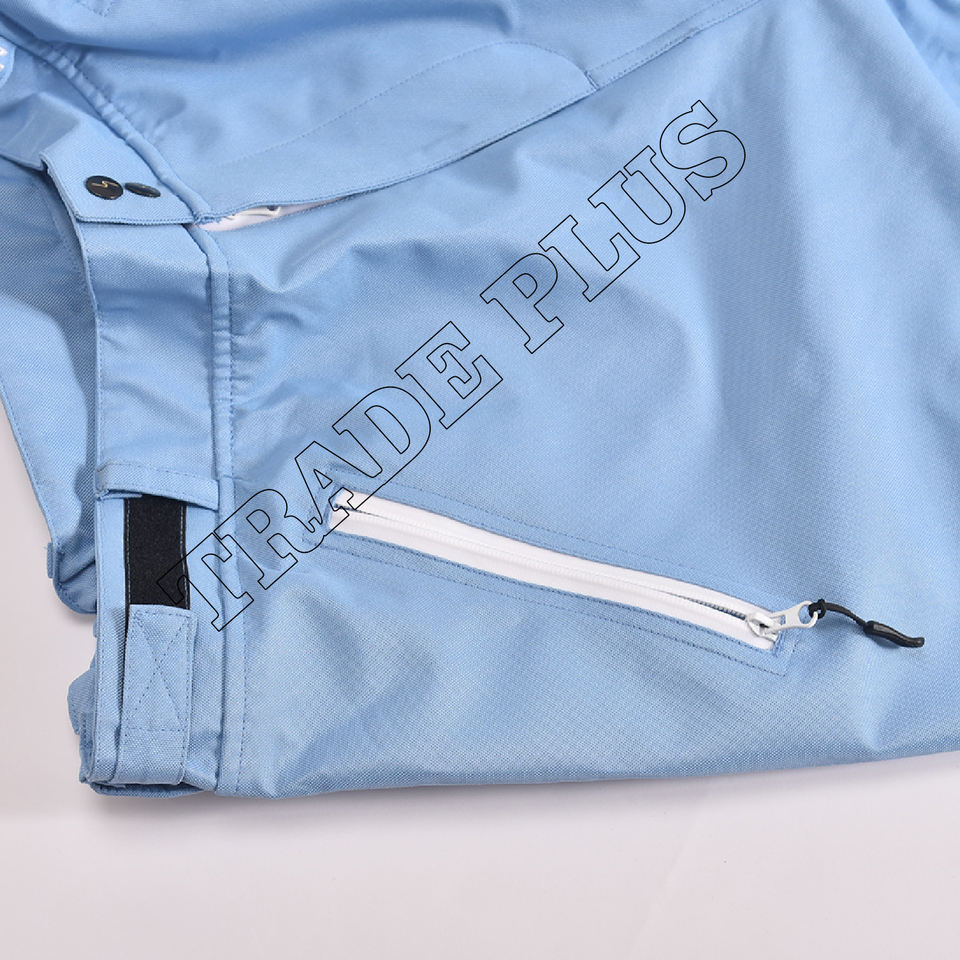 Pantalon de ski bleu clair de qualité supérieure, imperméable, avec passants pour ceinture, poches zippées et tissu coupe-vent
