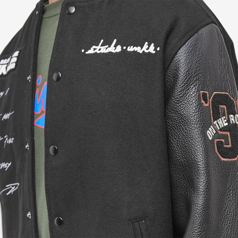 Veste universitaire personnalisée pour hommes, col montant en tissu de laine de haute qualité, broderie de style letterman, manches en cuir, ordre de fabrication
