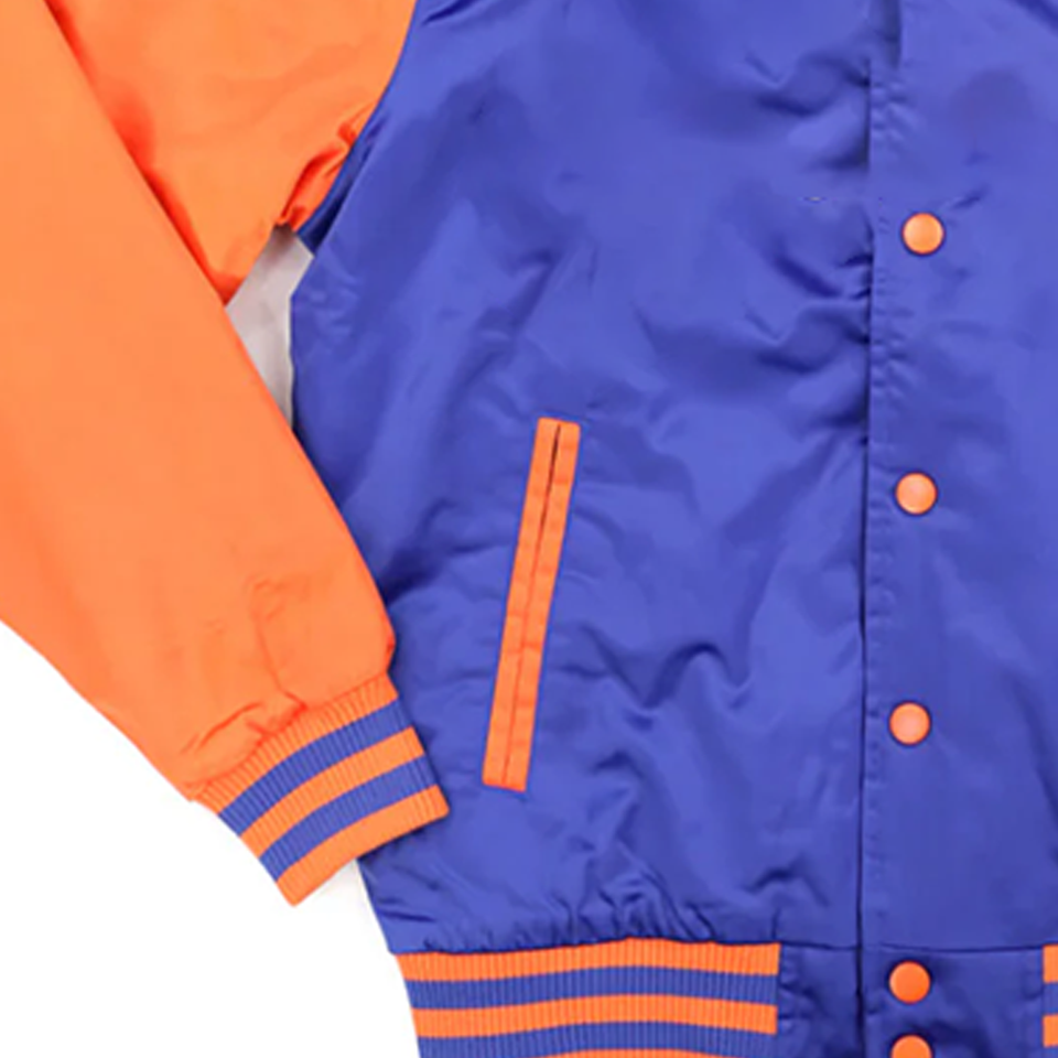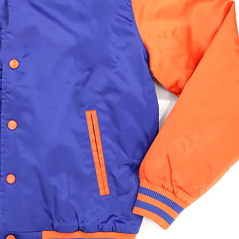 Blouson Bomber Unisexe Personnalisé Haut de Gamme en Soie/Coton, Réversible, Imperméable et Coupe-Vent, Bleu Royal à l'Avant, Orange à l'Arrière