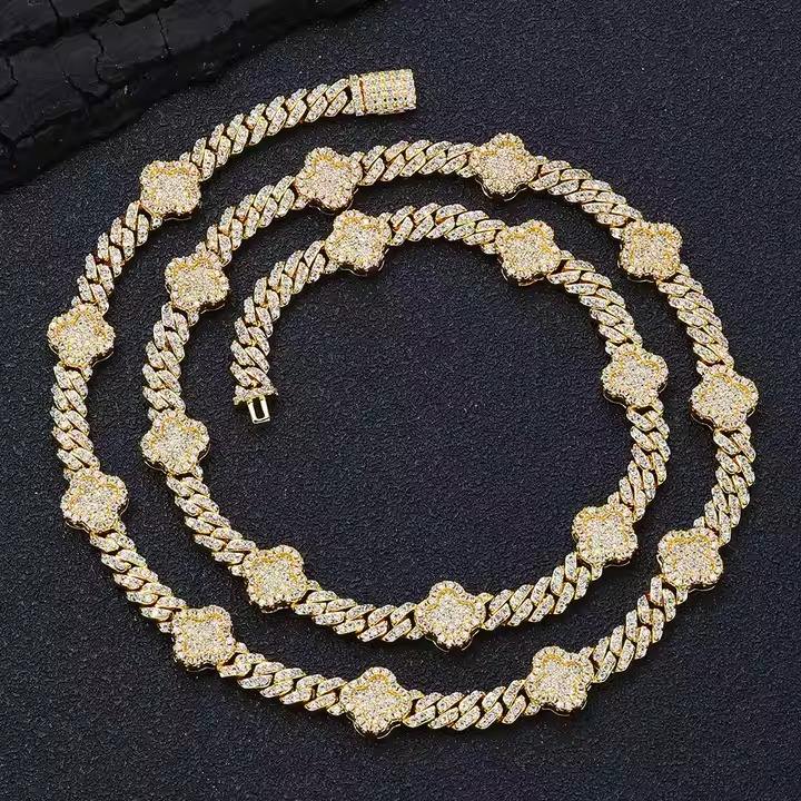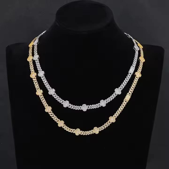 Collier Hip Hop Miami personnalisé de haute qualité pour hommes/femmes Unique or jaune VVS Moissanite diamant cubain chaîne lunette réglage