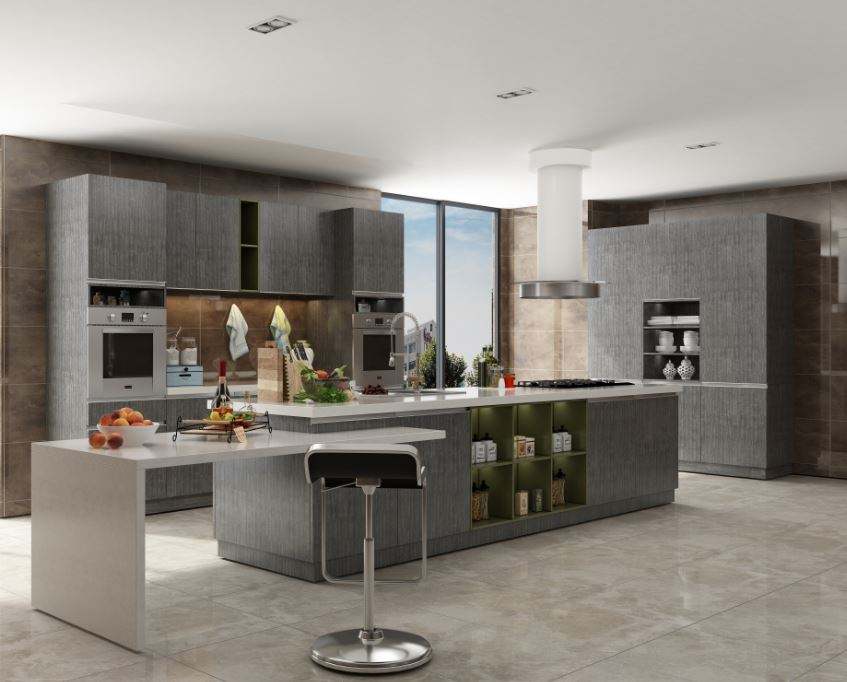 Armoire de cuisine moderne de haute qualité sur mesure avec contreplaqué et panneaux de particules, écologique et résistante à l'eau