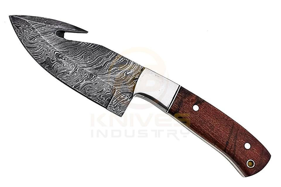 Couteau de chasse extérieur personnalisé de haute qualité OEM ODM DIY, lame fixe en acier Damas, manche en bois, couteau de survie pour le camping