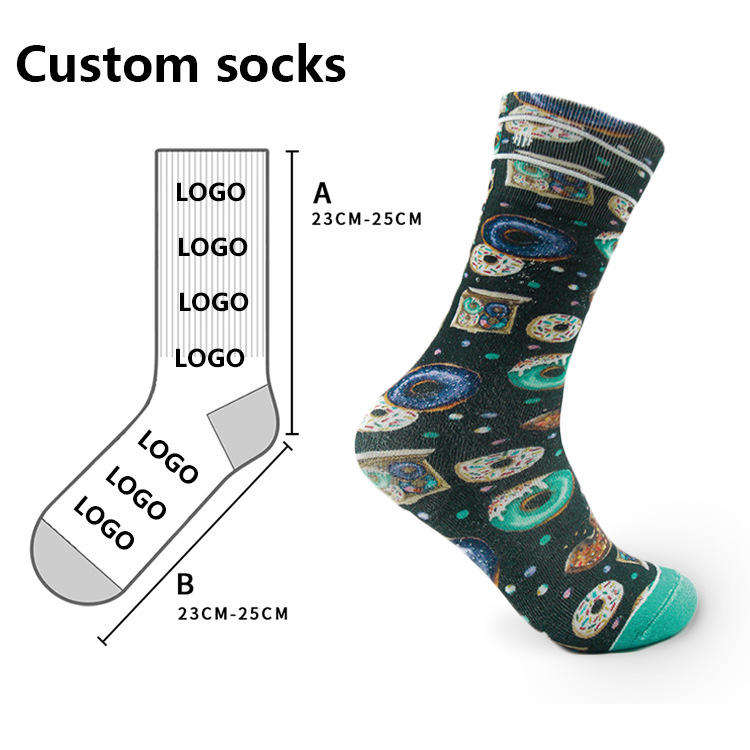 Chaussettes de sport blanches en polyester 100% personnalisées de haute qualité, imprimées par sublimation, chaussettes sèches imprimées