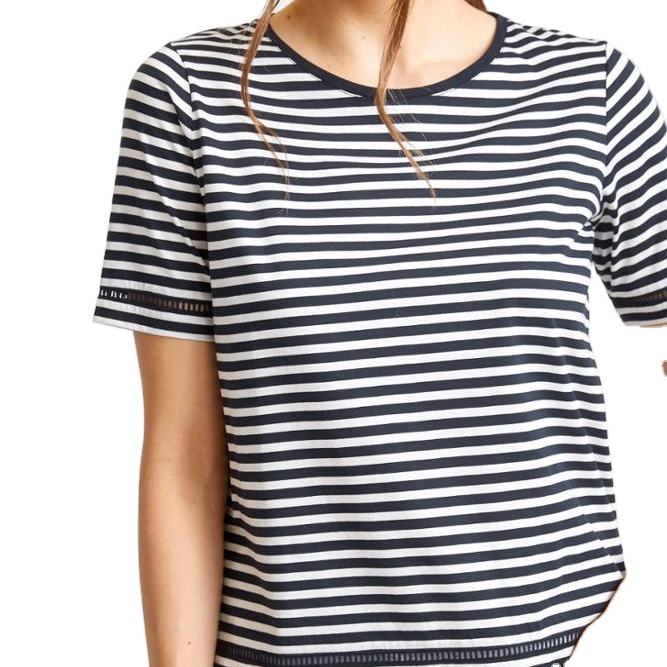 T-shirts à manches courtes rayés pour femmes grandes tailles, de haute qualité, personnalisés, respirants, écologiques, 100% coton, col rond, rayures graphiques