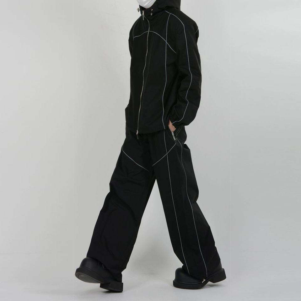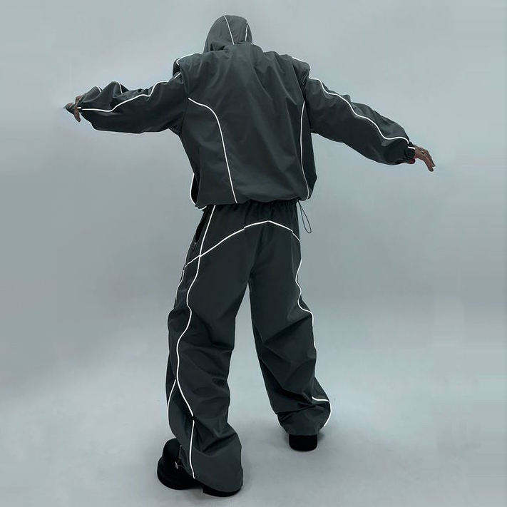 Ensemble de survêtement de haute qualité en polyester personnalisé, veste zippée surdimensionnée réfléchissante, imperméable et coupe-vent en nylon, et pantalon de survêtement