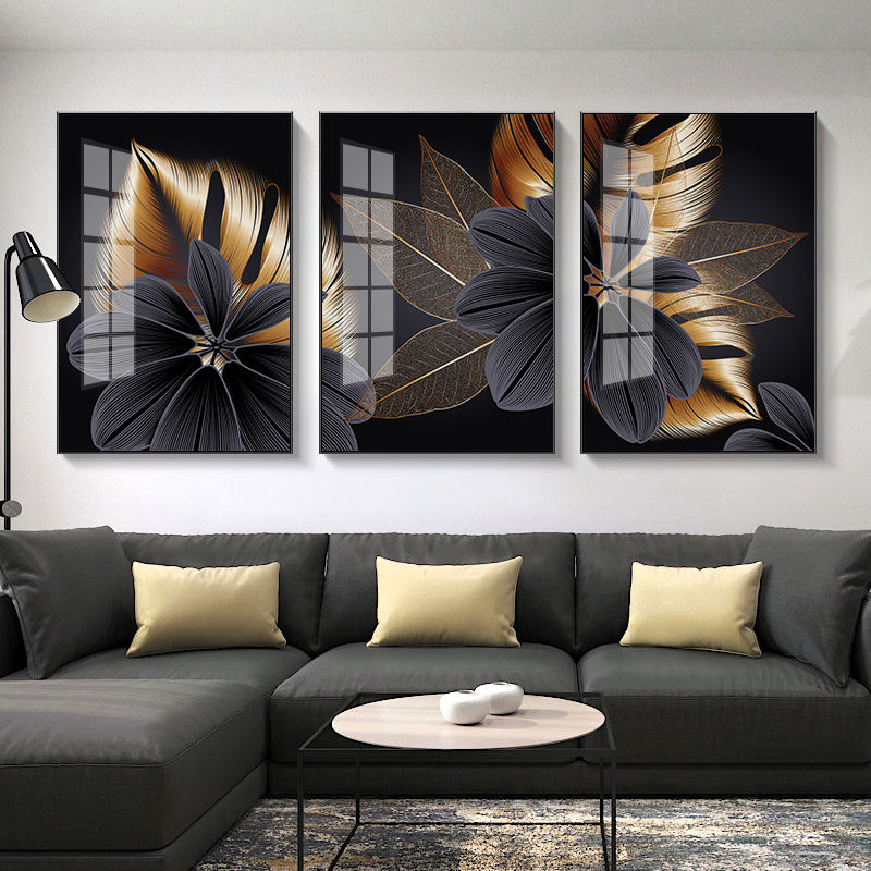 Photo imprimée personnalisée sur toile, de haute qualité, or noir, feuille plante dorée, peinture artistique murale, décoration de salon, 1 pièce