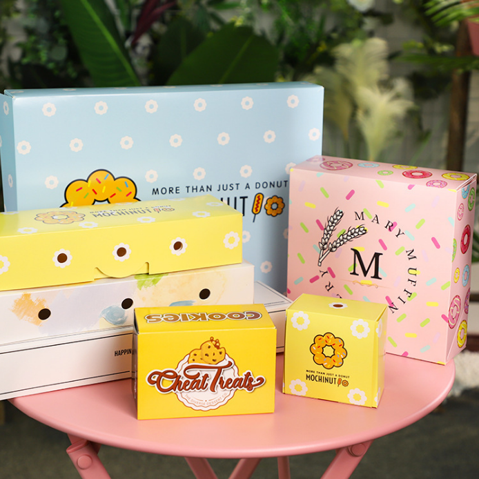 Boîtes d'emballage à emporter en carton imprimé personnalisé de haute qualité Prix de gros pour Muffin au chocolat Donut croustillant PET recyclé