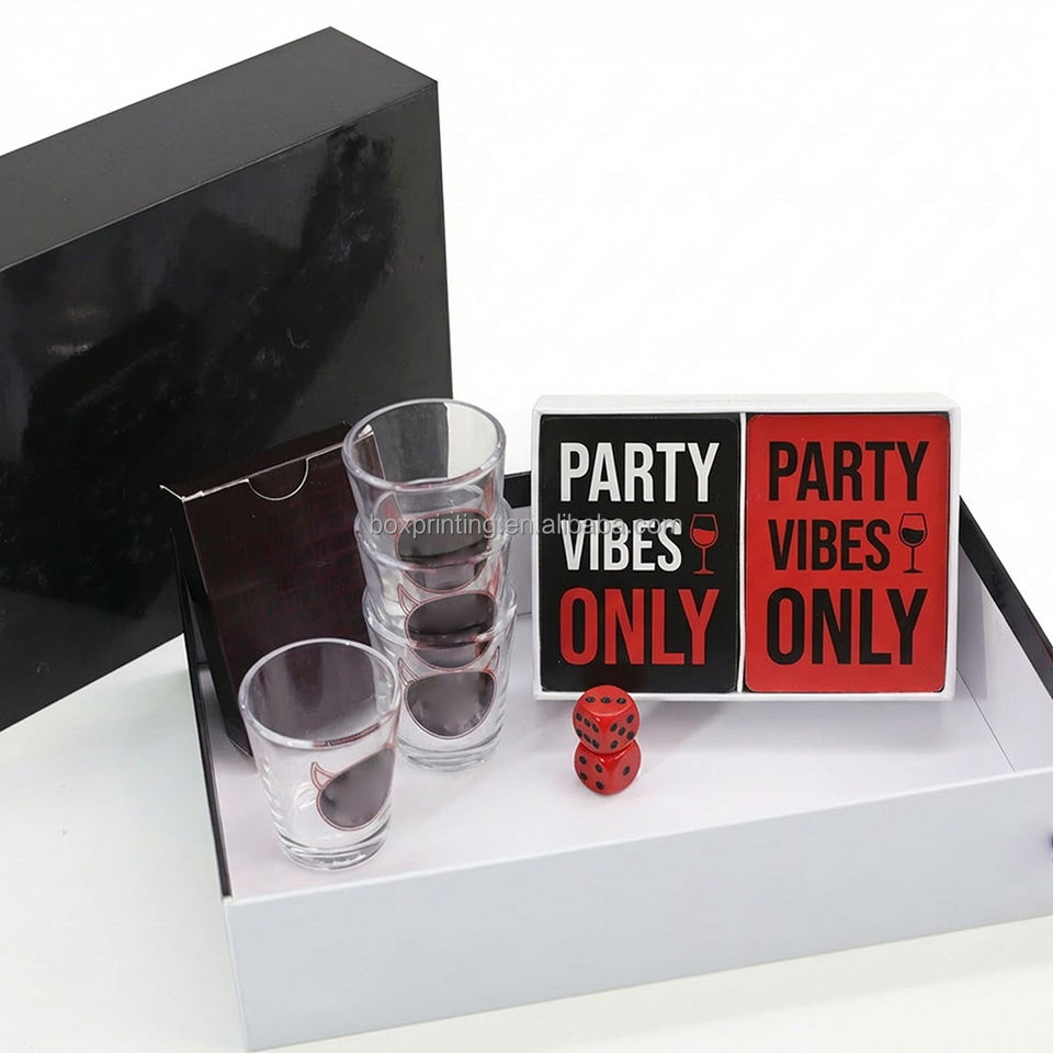 Cartes de jeu personnalisées de haute qualité imprimées sur mesure, fabrication de jeux de société avec plateau pour la famille, avec gobelets en verre