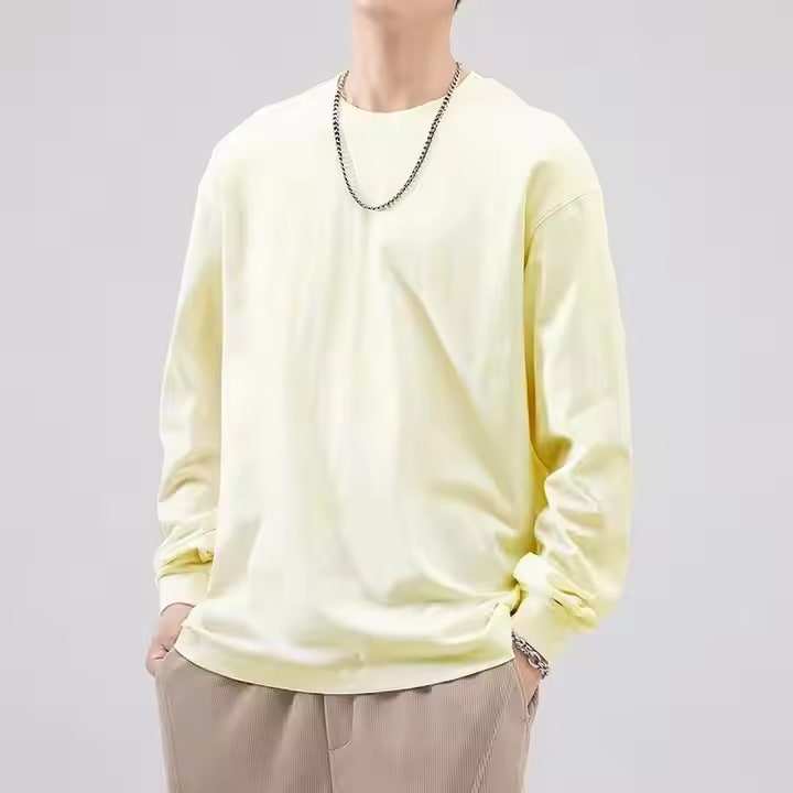 T-shirt à manches longues imprimé personnalisé de haute qualité motif teint uni avec méthode de tissage au crochet chemise de couleur unie hommes/Stock.