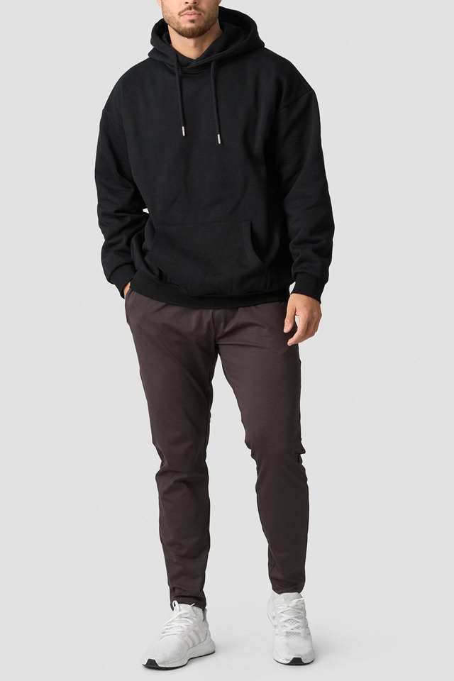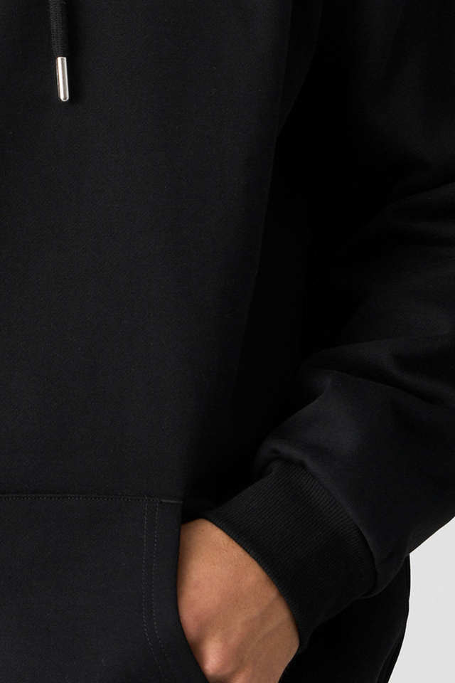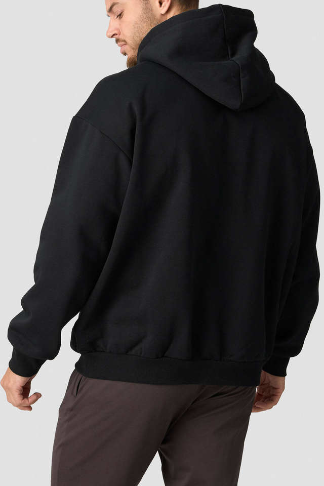 Sweat à capuche noir uni à épaules tombantes en molleton épais 450 g/m² avec logo imprimé personnalisé de haute qualité – Fabricant