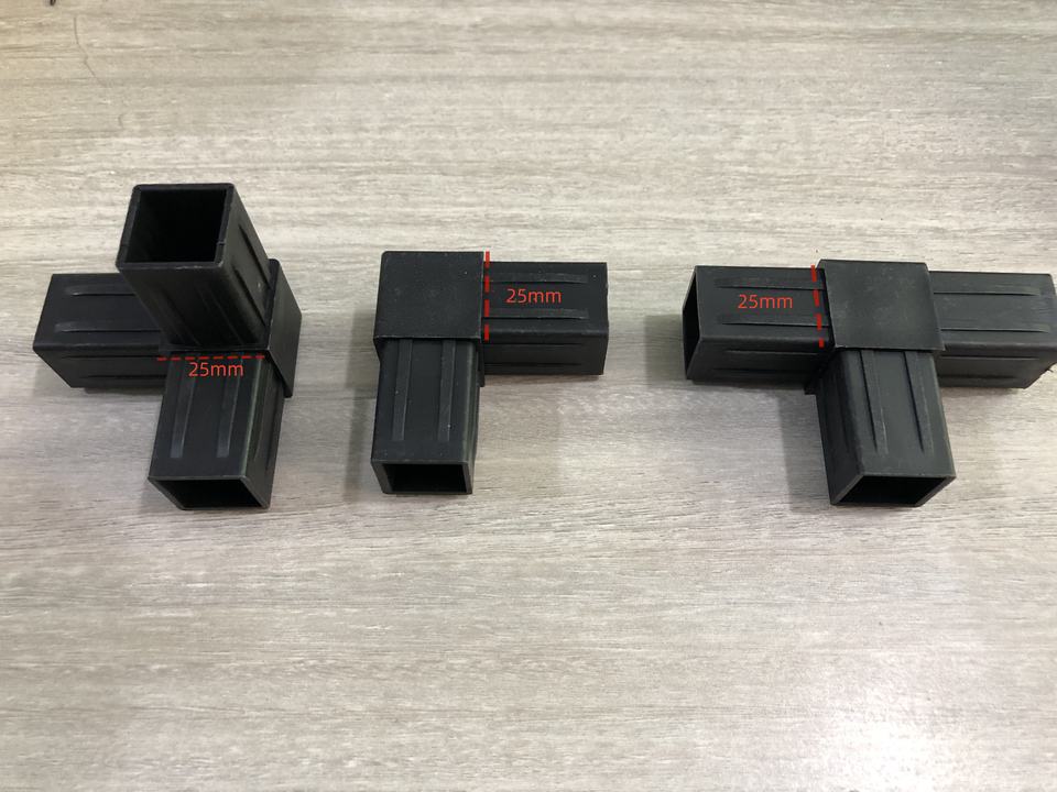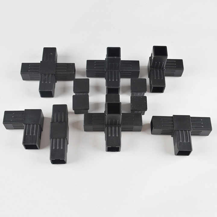 Production personnalisée de haute qualité, 25mm, beaucoup de chemins différents, raccord de tuyau carré pour coin de Table, connecteur en plastique pour Tube carré