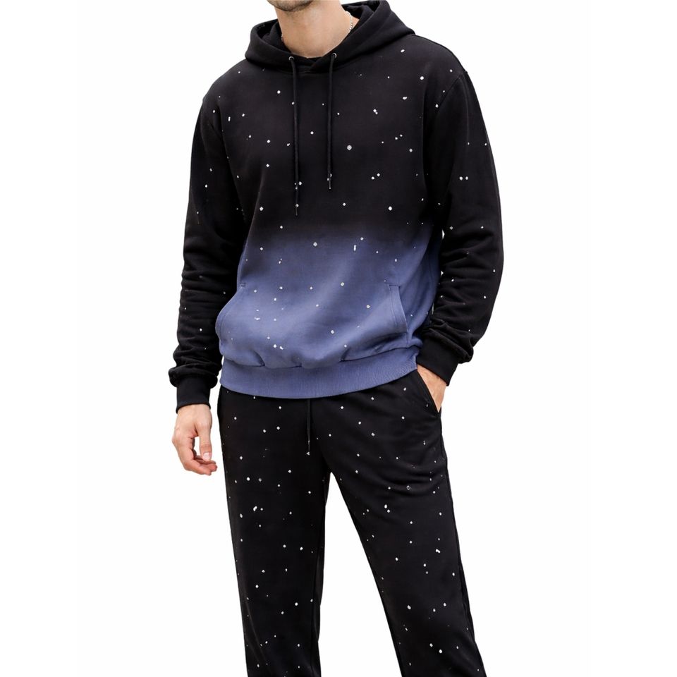 Sweat à capuche personnalisé de haute qualité, coupe classique, effet délavé au soleil, avec strass, respirant, 100% coton, ensembles de survêtement avec strass
