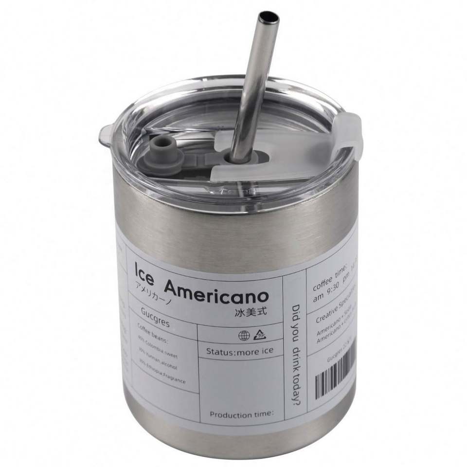 Mug de voyage isotherme en acier inoxydable à double paroi, réutilisable et personnalisé, avec paille, de haute qualité