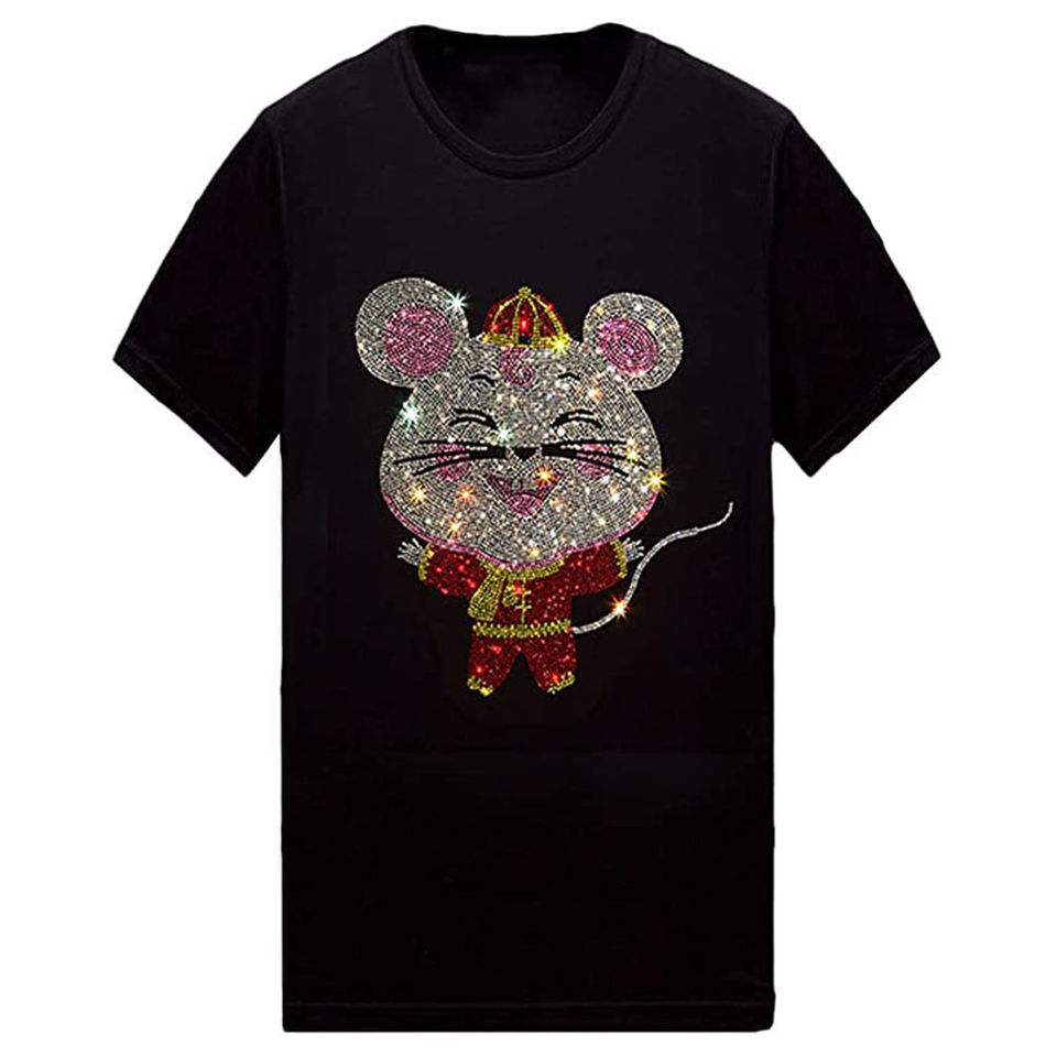 T-shirts d'été personnalisés de haute qualité avec transfert de strass pour hommes, T-shirt à strass à manches courtes et col rond, Vente chaude