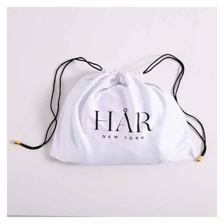 Sac à perruque en satin personnalisé de haute qualité avec cordon de serrage, sac à bijoux en soie imprimé, pochette anti-poussière, excellent emballage textile