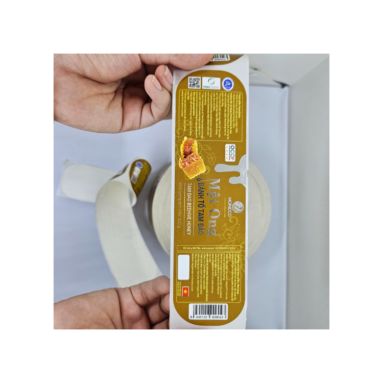 Haute qualité forme personnalisée autocollant adhésif étanche papier Kraft étiquettes alimentaires cosmétiques vietnamien Offset fantaisie papier carton