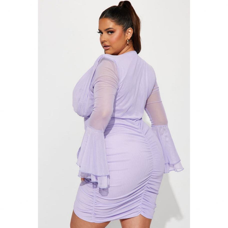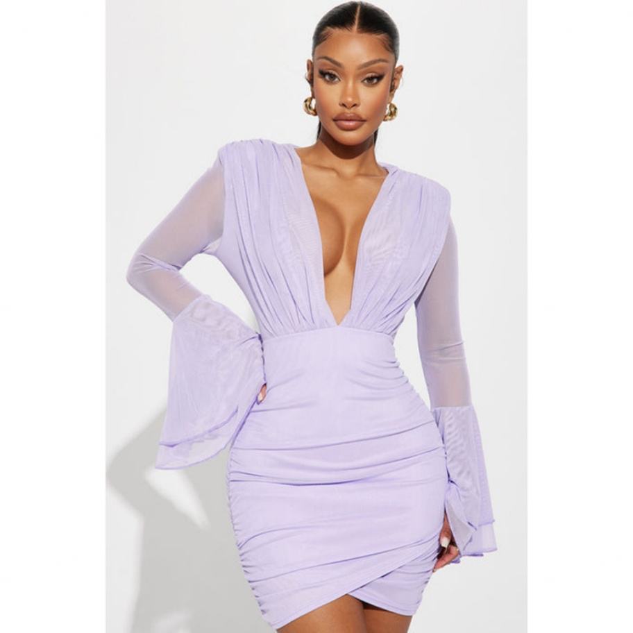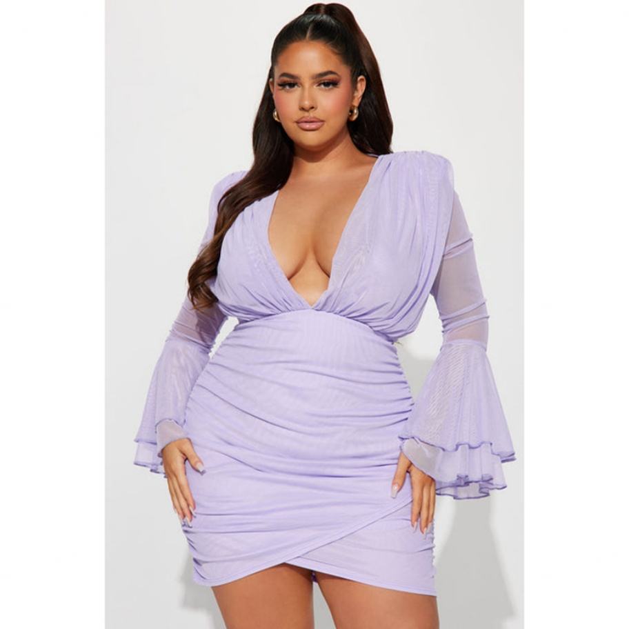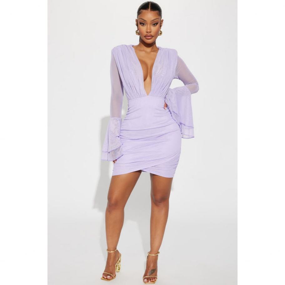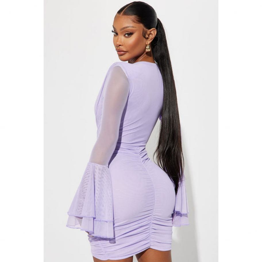 Robe décontractée sexy pour femme en mousseline de soie froncée, col en V, manches longues, taille personnalisée, haute qualité