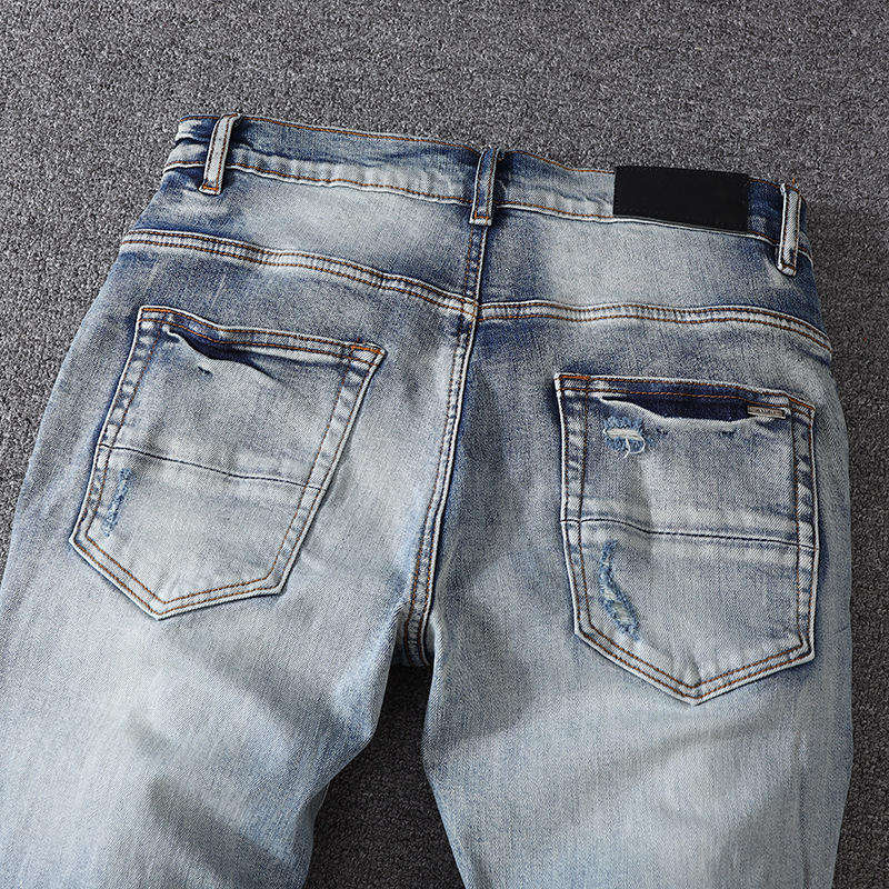 Jeans en denim pour homme de haute qualité, coupe slim, streetwear, style urbain, respirant, en coton, vintage