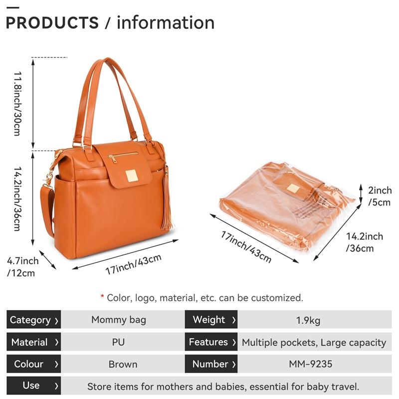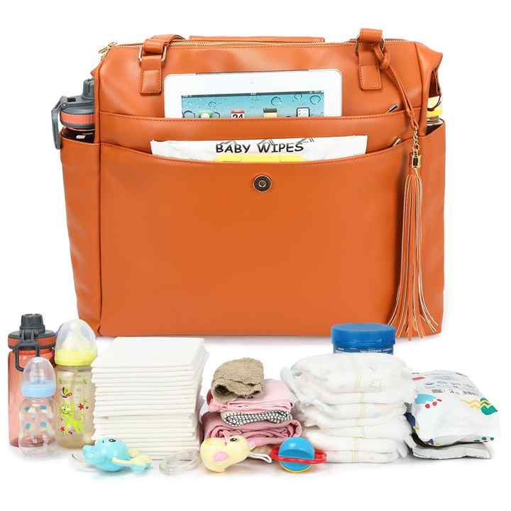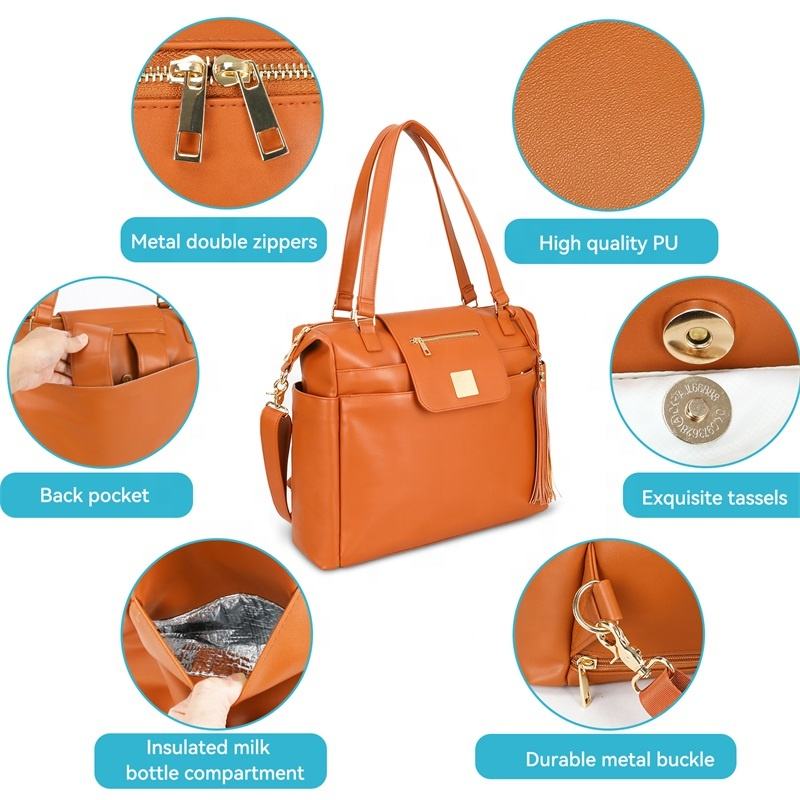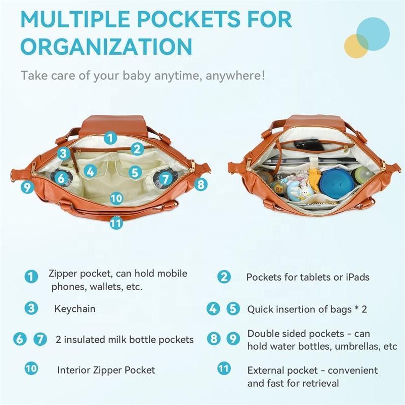 Sac fourre-tout en cuir végétalien PU souple personnalisé de haute qualité grande capacité 11 poches trois mode bohème étanche pour maman été