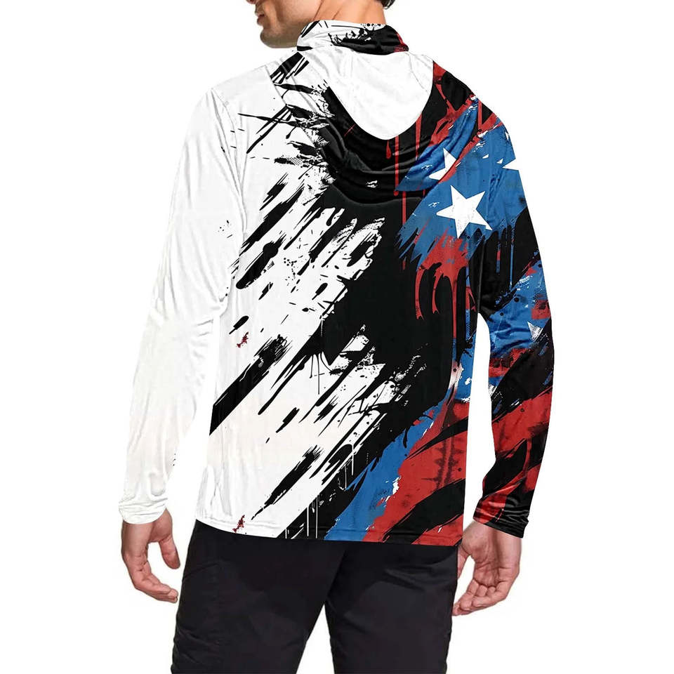 Chemise de pêche à manches longues pour homme, légère, respirante, 100% polyester, impression numérique personnalisée de haute qualité, UPF 50, avec capuche