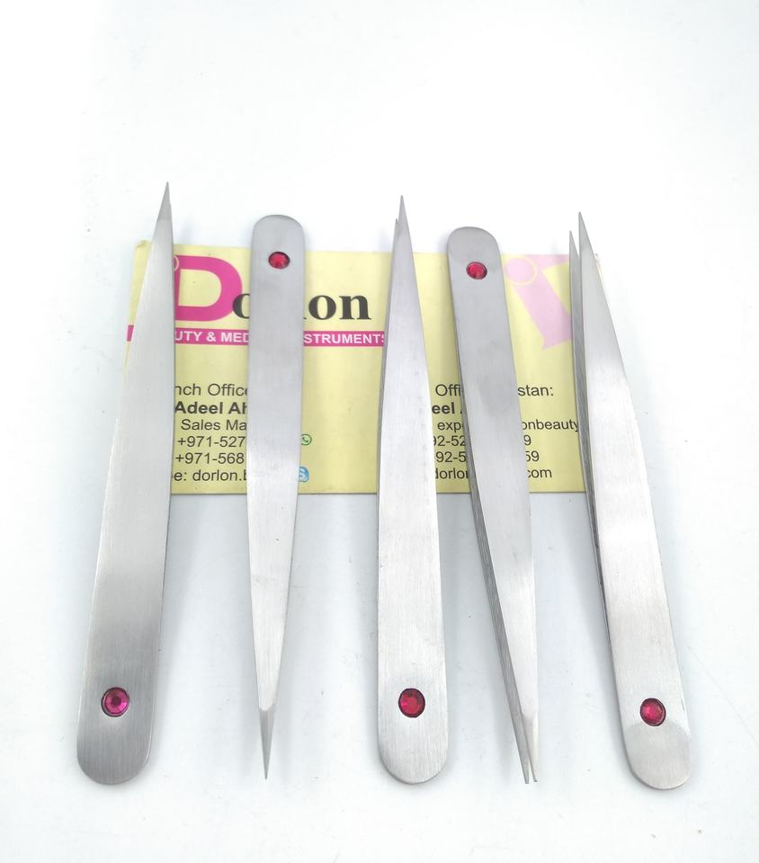 Pince à épiler à sourcils en acier inoxydable personnalisée de haute qualité applicateur de sourcils coloré avec produit d'étiquette supérieure à pointe inclinée