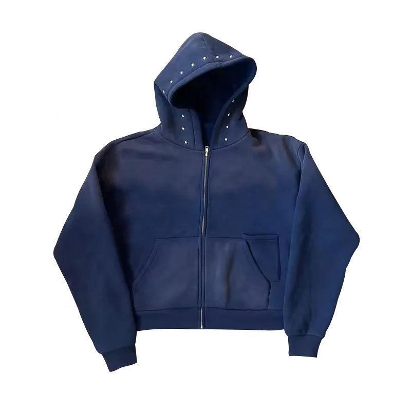 Fabricants de sweats à capuche zippés en strass de haute qualité personnalisés avec lavage à la pierre 100% coton recadrée boxy lavage à l'acide sweat à capuche hommes 2025