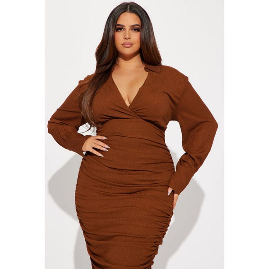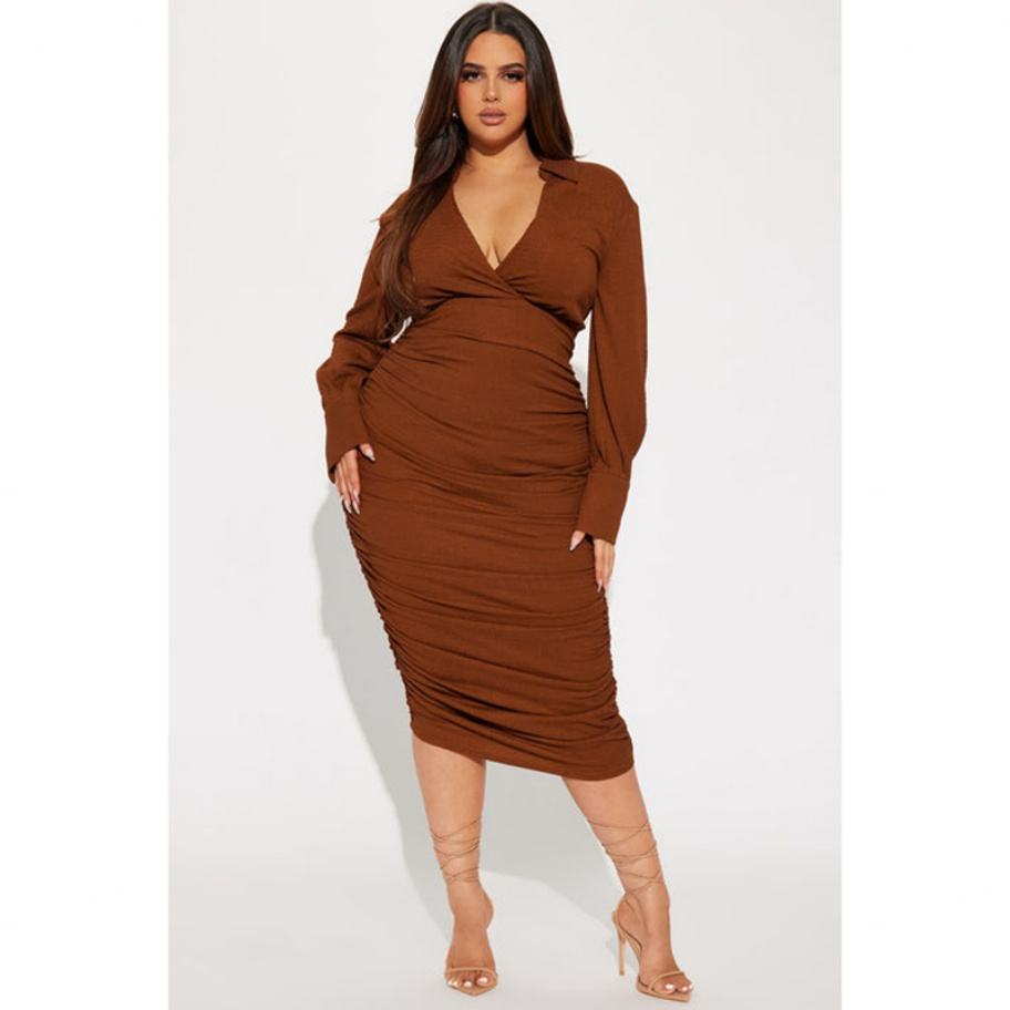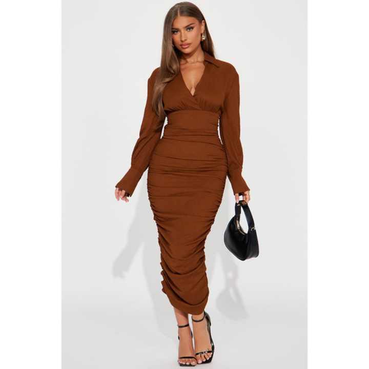 Robe chemise femme de haute qualité, style personnalisé, avec logo texturé, manches longues, dos froncé, fermeture éclair, taille naturelle, lavable