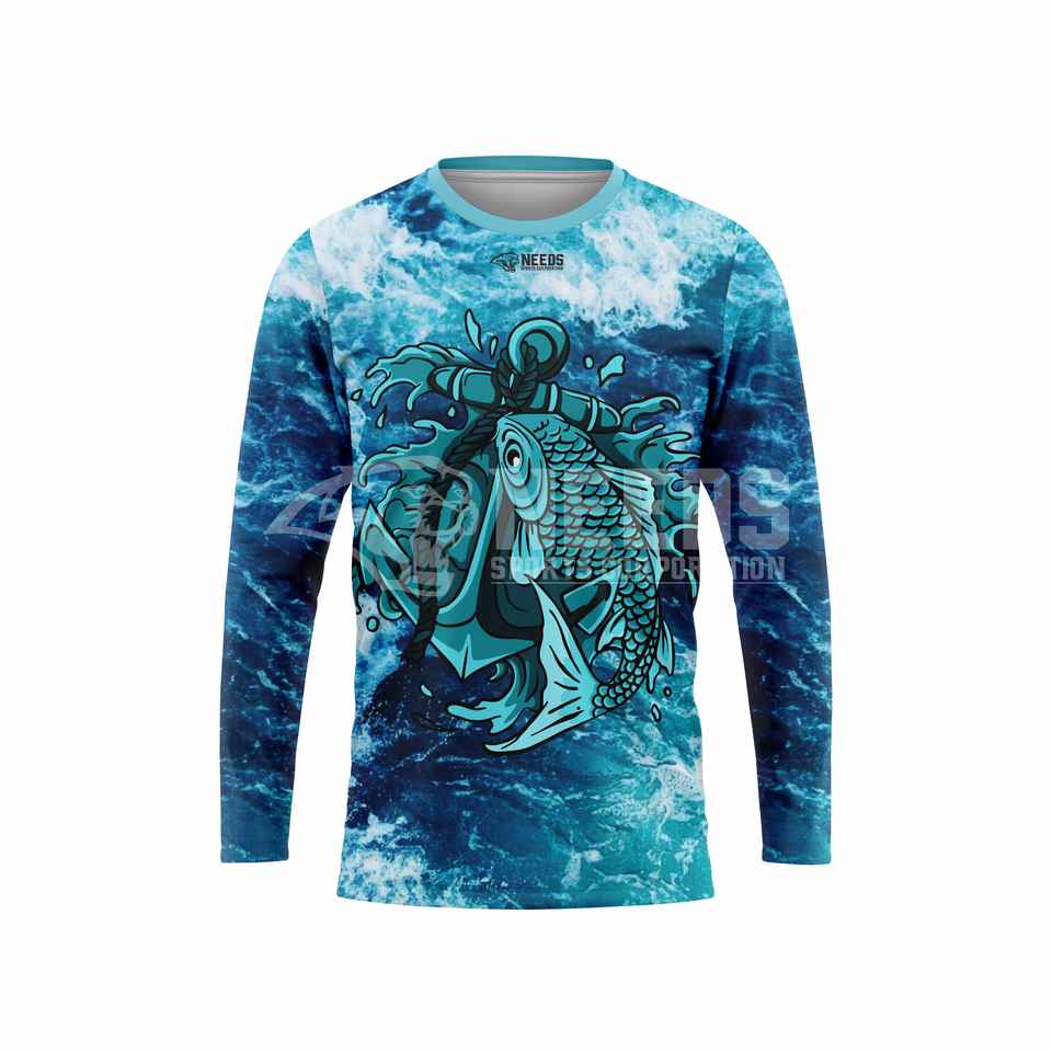 Vêtements de pêche respirants de haute qualité, personnalisés, imprimés par sublimation, à séchage rapide, manches longues, 100% polyester, antibactériens, protection UV