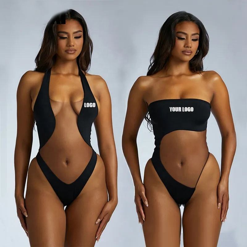 Maillot de bain personnalisé de haute qualité tissu texturé respirant licou maillot de bain une pièce vêtements de plage
