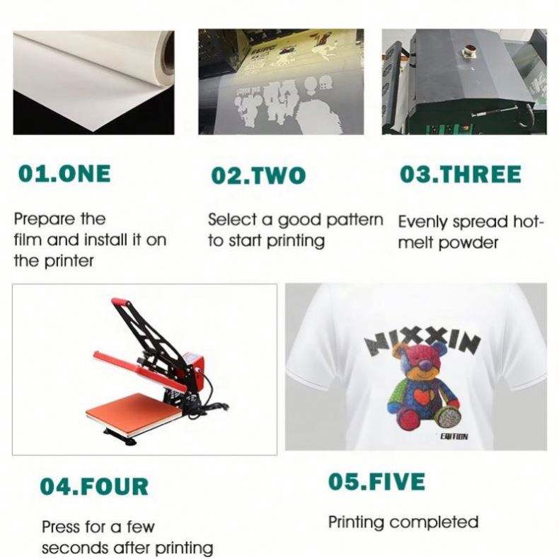 Transferts de T-shirts en film PET de haute qualité pour l'application sur vêtements, conception personnalisée