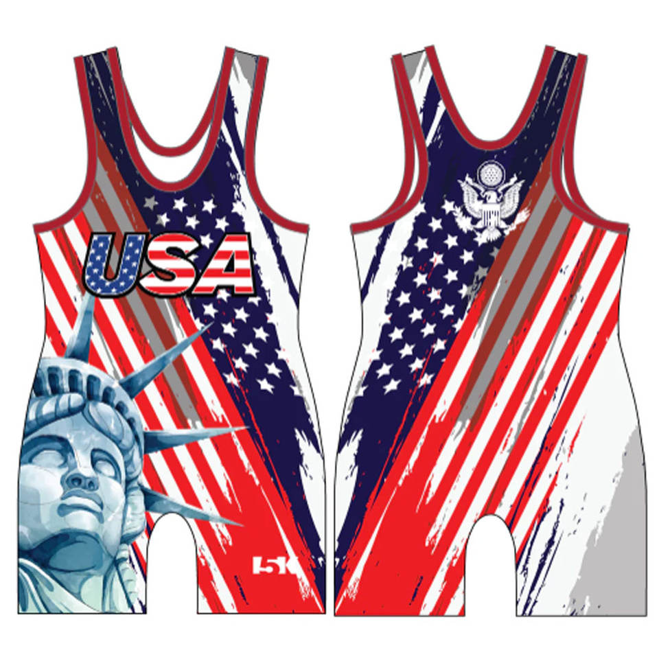Uniforme d'athlétisme personnalisé de haute qualité-Sublimation imprimé costume d'haltérophilie singulet de lutte taille élastique couleur de contraste