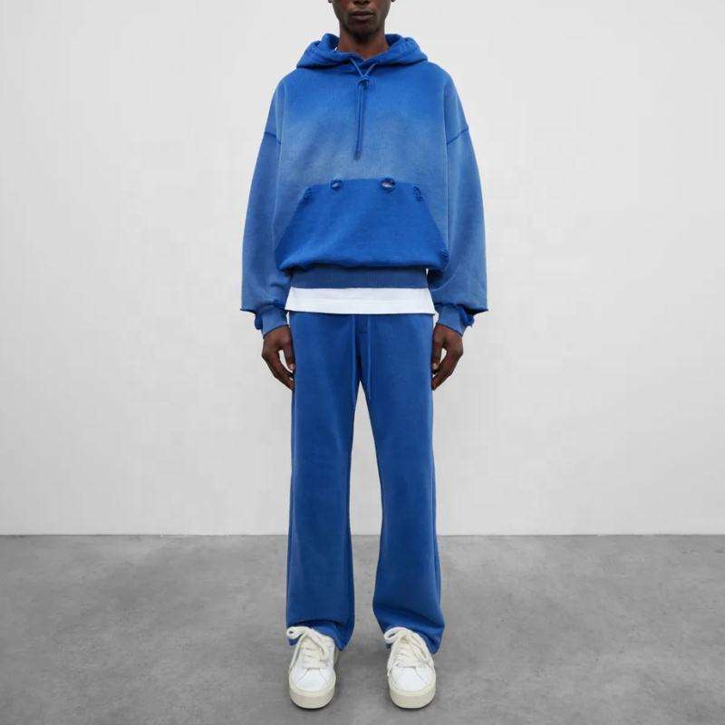 Haute qualité personnalisé unisexe 100% coton déchiré pierre acide lavage en détresse goutte épaule recadrée sweat à capuche hommes
