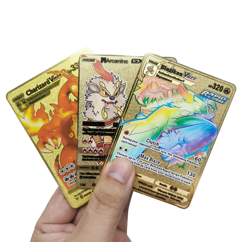 Vente en gros de cartes de jeu Pokemoned personnalisées de haute qualité-Vmax avec Charizard 1st Gold Black Stainless Steel Metal Finish Plastic