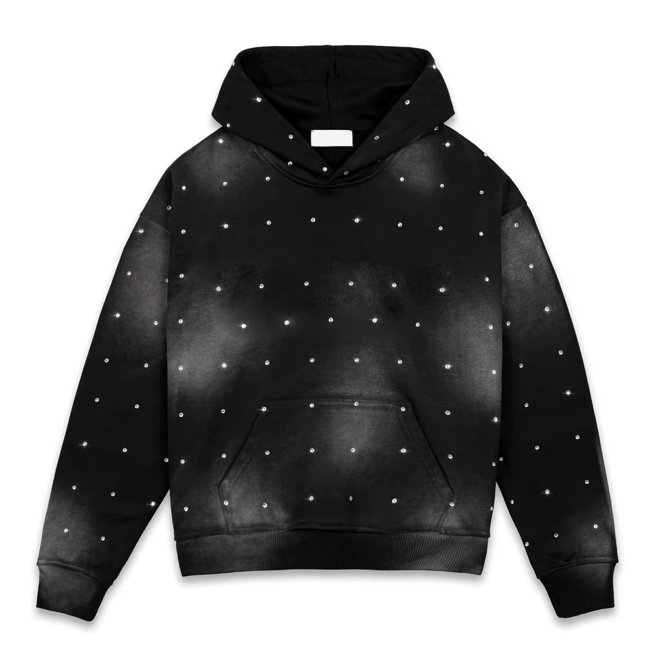 Sweat à capuche personnalisé pour homme, de haute qualité, effet délavé, avec strass, 100% coton, séchage rapide et écologique, service OEM